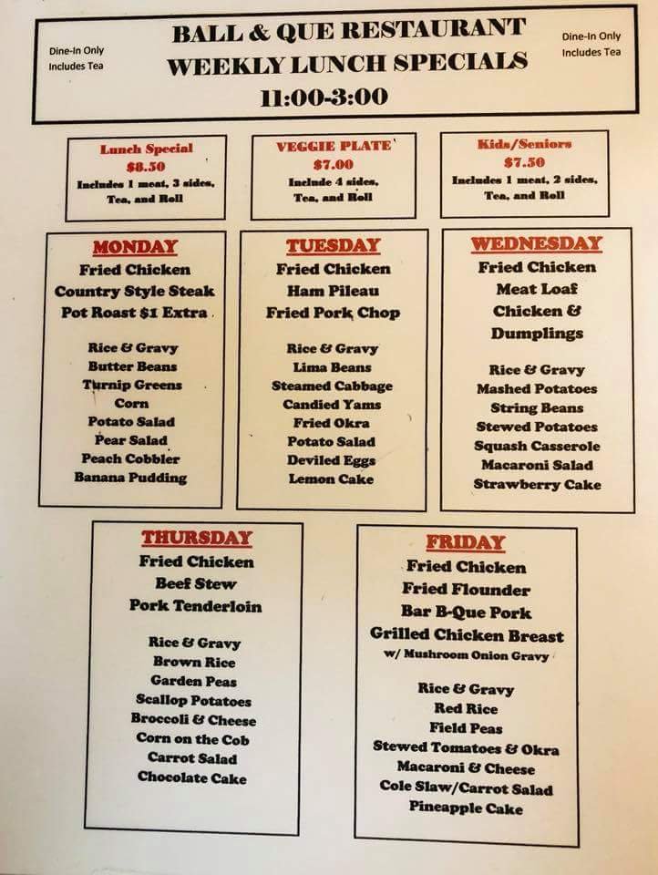 Welcome to Ball & Que Restaurant, a beloved gem in Georgetown, SC, serving up delicious American cuisine with a twist. Known for its home-cooked meals, the menu is a delightful blend of comforting favorites and unique dishes, ideal for brunch or lunch.